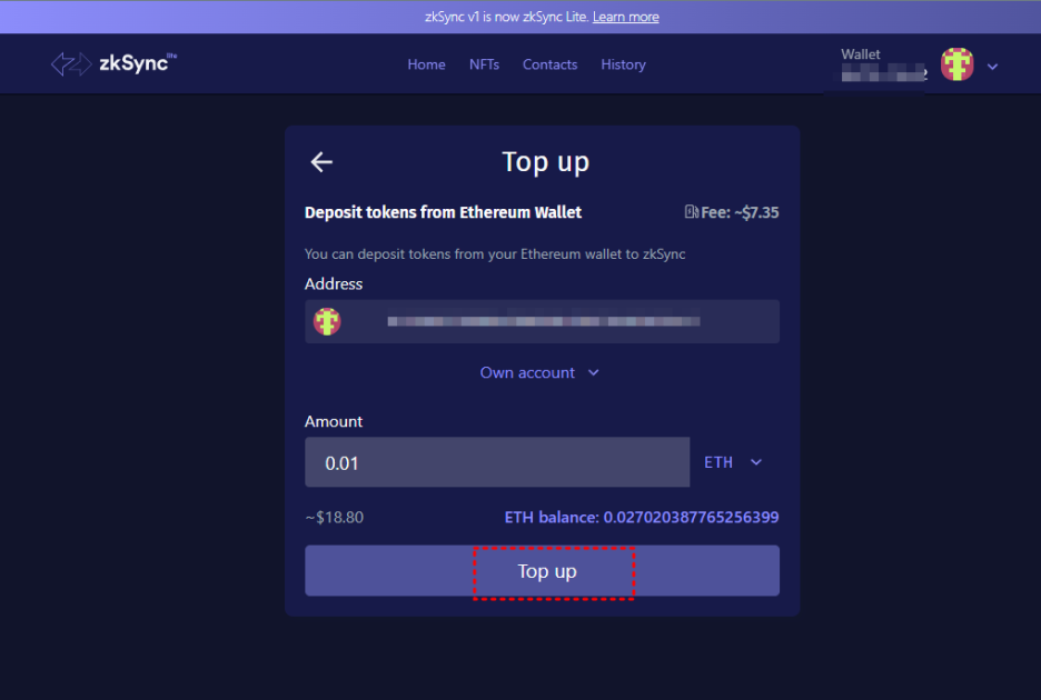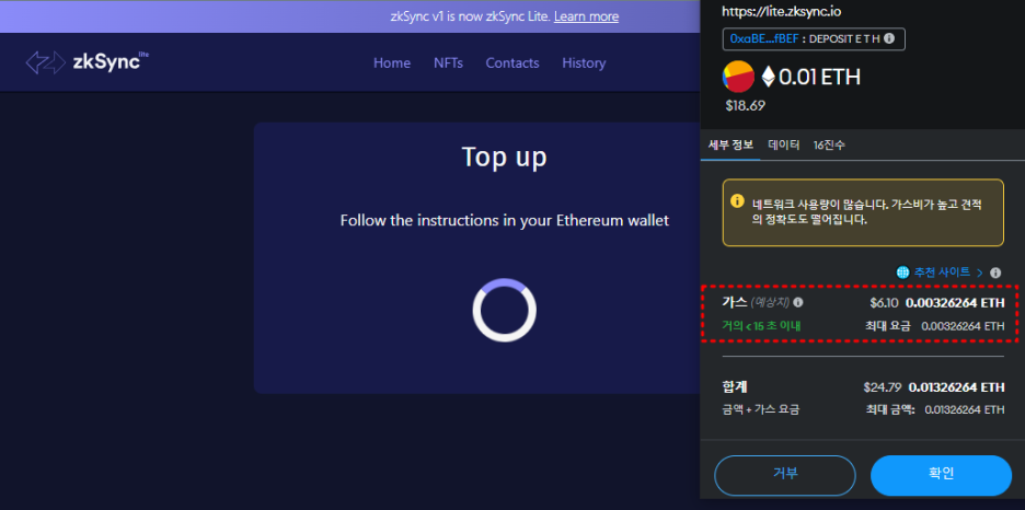 zksync Lite 브릿지 : https://lite.zksync.io/account