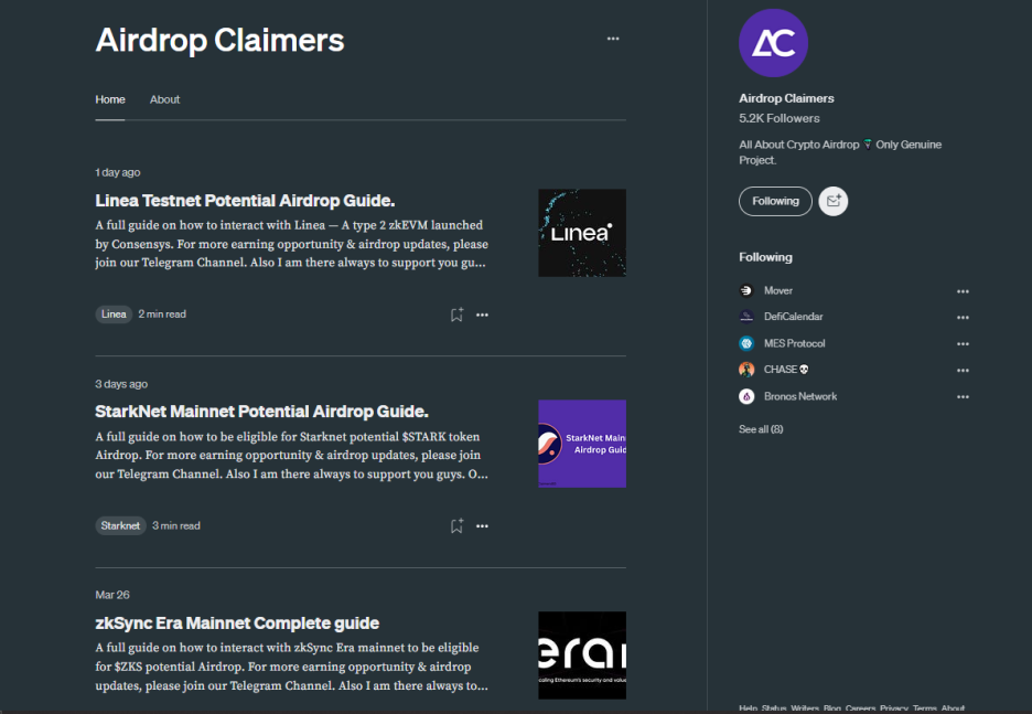 타 에어드랍도 차근차근 성실히 대응해 나야야 겠다는 생각을 함 (미디움, 유튜브 위주로, 트윗 정보는 사짜가 많아서)