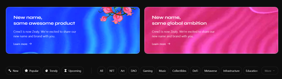 참조로 기존 수행작업에 참여하는 Crew3가 Zealy로 리브랜딩 되었습니다.