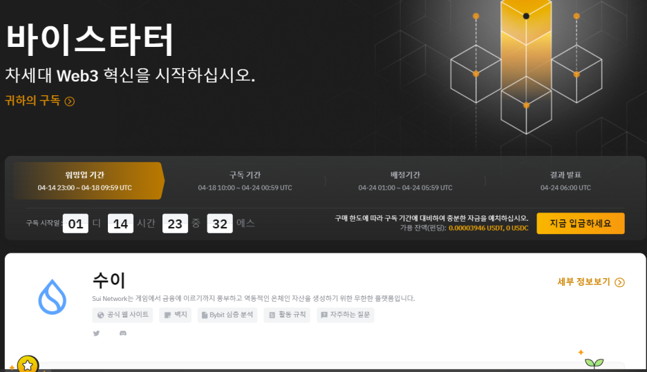 화이트리스트에 있는 참가자라면 ByStarter 페이지로 이동하여 SUI 토큰을 구입하는 방법을 알아보세요!
