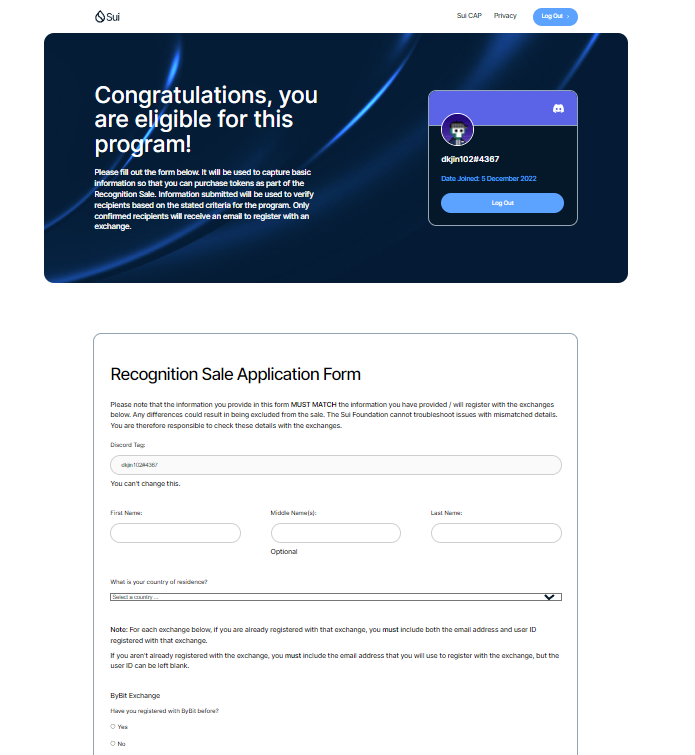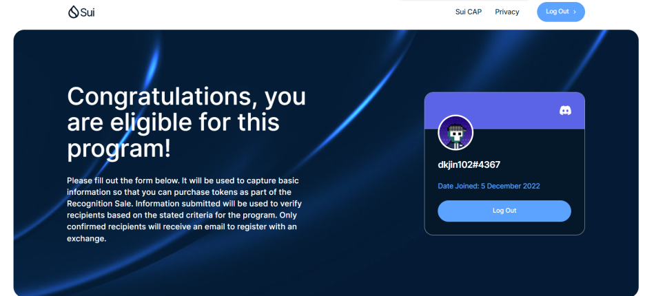 - Discord의 Sui 커뮤니티 참가자만 자격이 있습니다. 이 초대장은 2023년 2월 1일 이후에 가입한 일반 대중 또는 커뮤니티 회원에게는 공개되지 않습니다.