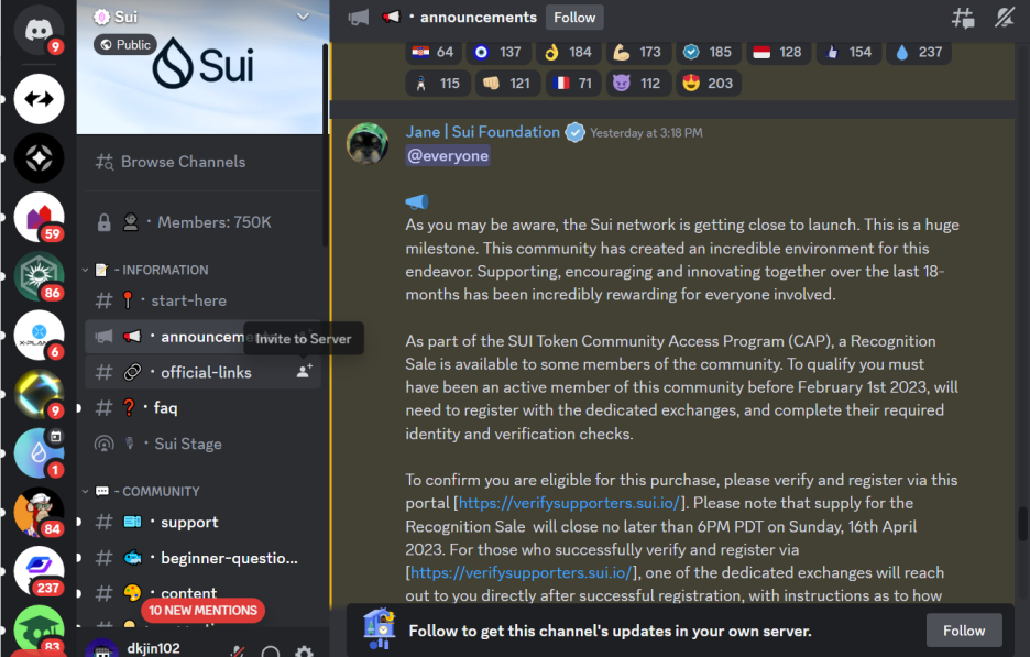그 당시 Sui 디스코드에 가입하는 부분이 있었던거 같은데