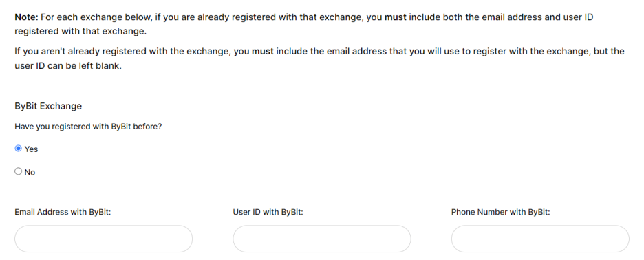 당신의 의견에 대해 감사합니다 스팸 폴더를 포함하여 앞으로 며칠 동안 이메일 받은 편지함을 주시하십시오. 제출이 성공적이면 3개 거래소(ByBit, OKX, KuCoin) 중 하나가 판매 참여 방법에 대한 지침과 함께 연락을 드릴 것입니다.