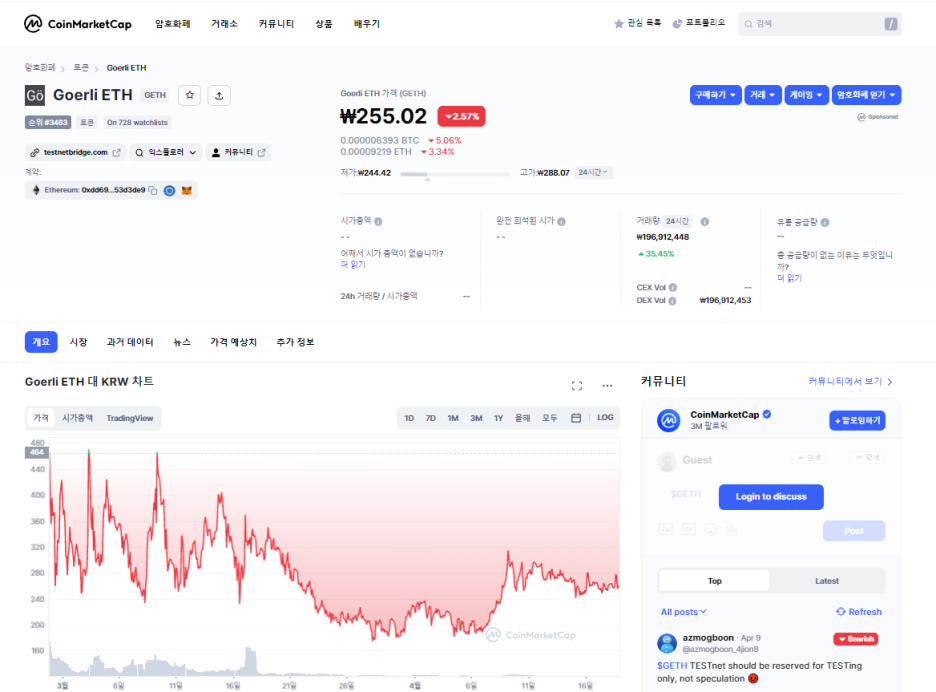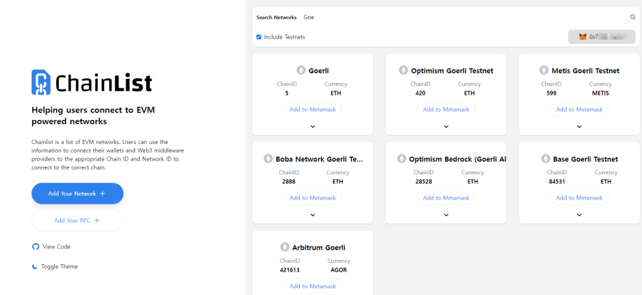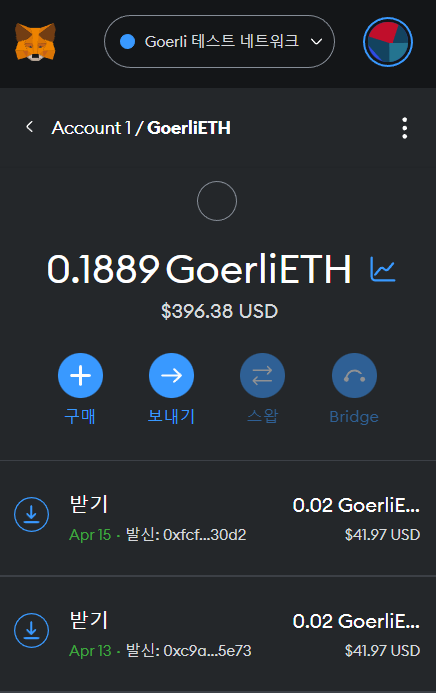 오른쪽이 테스트넷 (METH, GOERLI)
