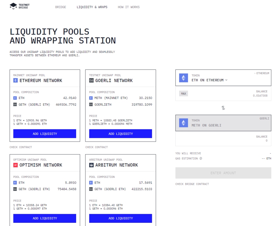 이더리움 메인넷에서 고엘리이더(테스트이더)와의 유동성을 확보하는 테스트넷 브릿지