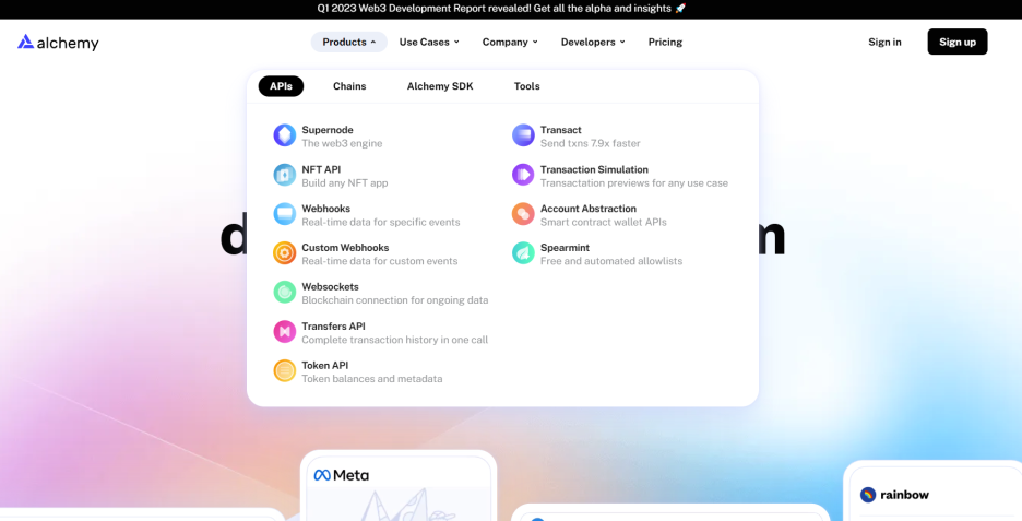 Whether you're a beginner developer, startup, web3 market leader, or a large enterprise, Alchemy makes multichain web3 development easy with reliable and scalable node infrastructure, enhanced APIs, and developer tools. Get started for free!