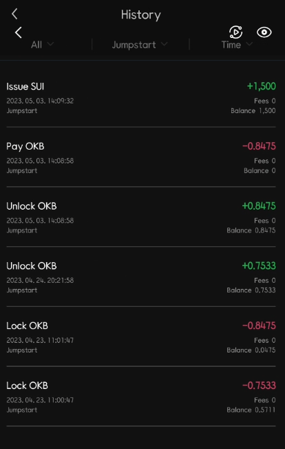 화이트리스트 0.8475 OKB PAY완료되며 SUI +1,500개