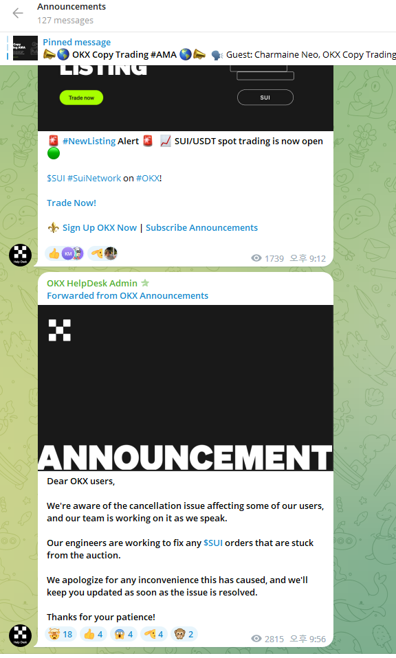 OKX에서 공지도 띄우고
