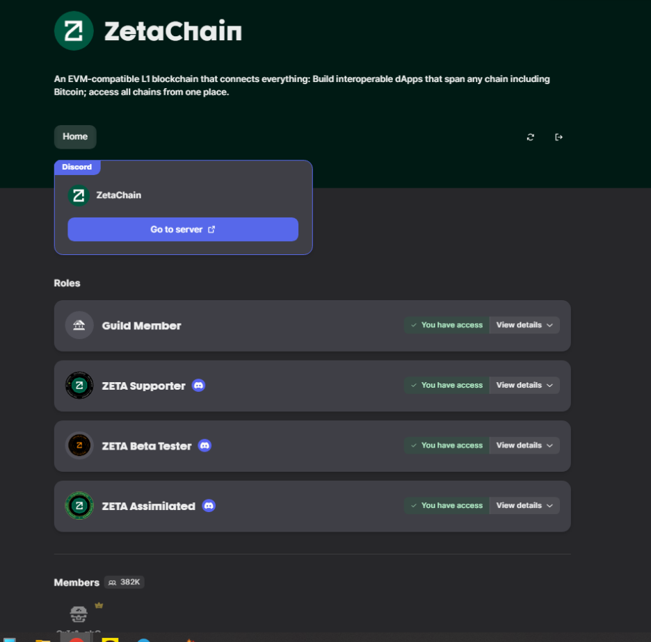 참여를 위해 ZetaChain Guild 에서 Discord 역할을 확보하십시오 .