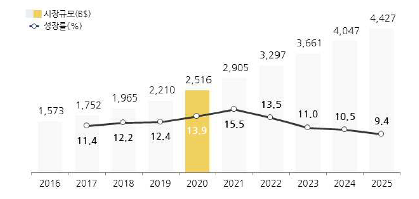 2023년 시장규모는 4,700조 이상으로 예상된다.