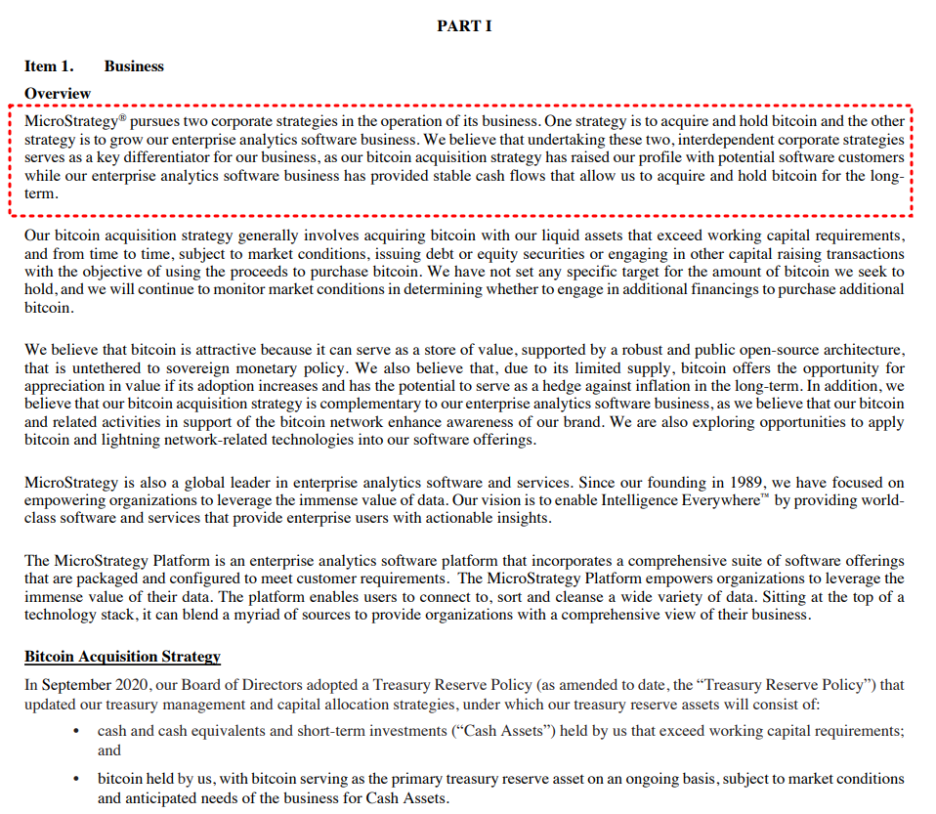 비즈니스의 첫번째 전략은 비트코인을 획득하고 홀드하는 적략이다.