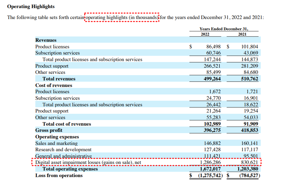 디지털 자산의 보유가치 2B USD, 누적손해는 2.1B USD