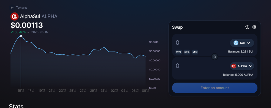 Sui Swap의 경우는 수이를 디파짓하고 간단한 스왑절차로 베러파이 가능