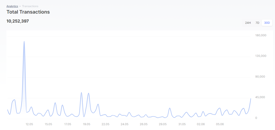 수이 트랜잭션의 경우 어느정도의 상승이 나오고 있는 상황