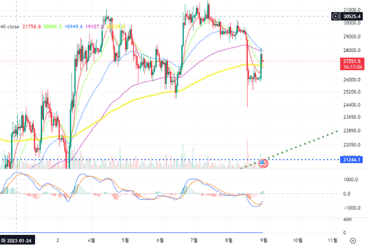 물론 장기 상승으로 보려면 33K를 가뿐히 뛰어 넘어야 함