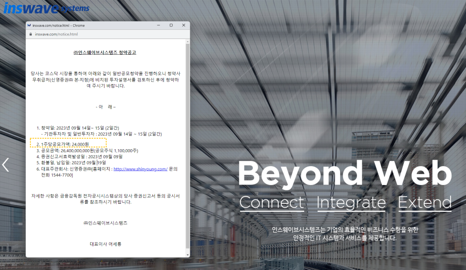 공모주 상장 가격 제한폭이 올라가고 금일 신규 상장한 인스웨이브시스템즈