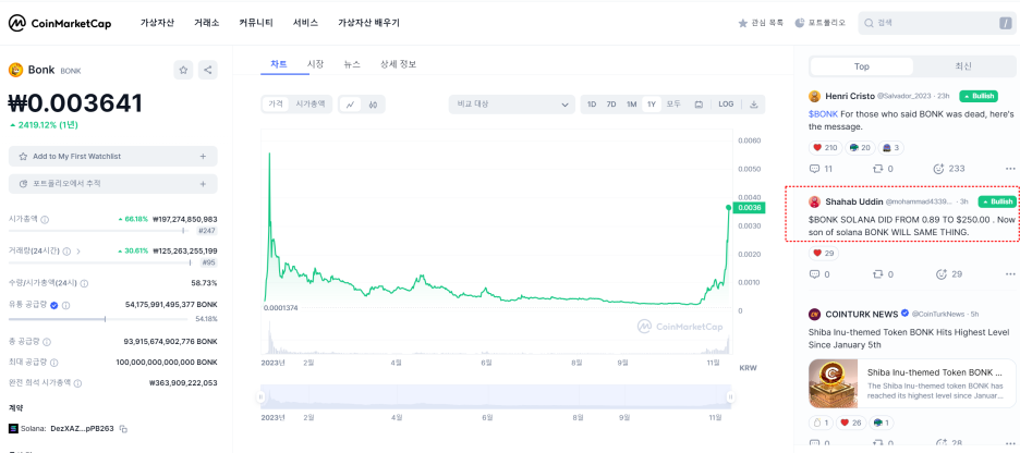 솔라나가 $0.89에서 $250 가듯이 봉크가 포텐을 가지고 있다고 하는데