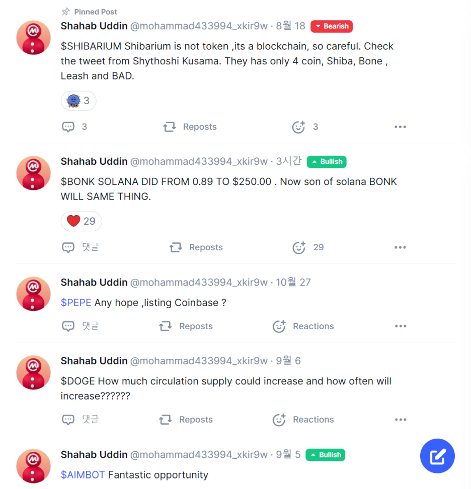 신빙성 하락하게 이 사람의 관심사는 대부분 밈코인이네