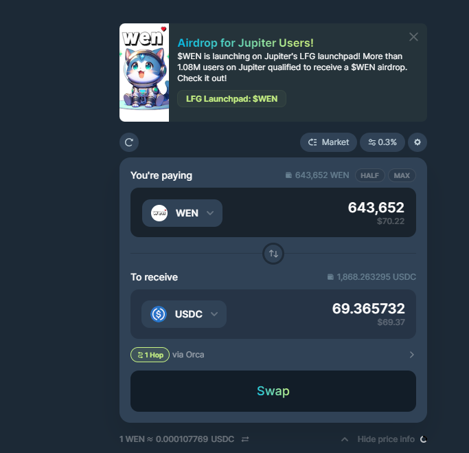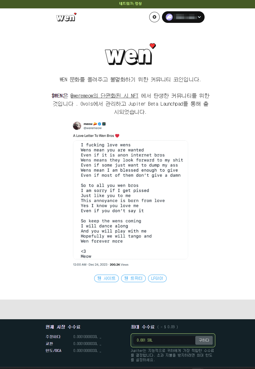 $WEN 토큰은 Ovols 팀이 Jupiter의 새로운 LFG 런치패드를 사용하여 출시한 최초의 시 토큰입니다.