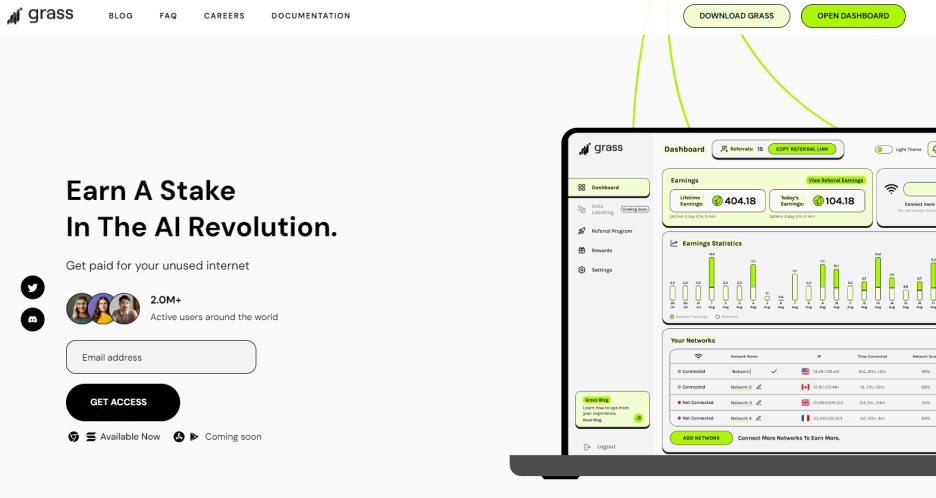 Grass is the easiest way to participate in the growth of AI. Join 2,000,000+ users securely monetizing their internet resources.