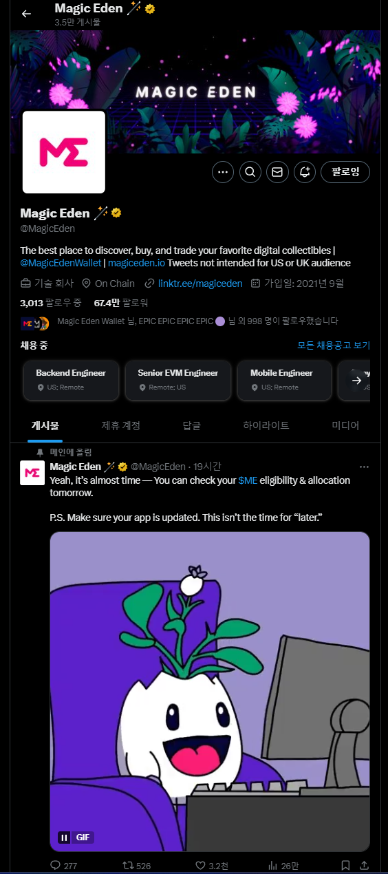 솔라나 NFT 대표 마켓플레이스인 매직에덴에서 매직에덴 $ME 토큰 출시 예정입니다.