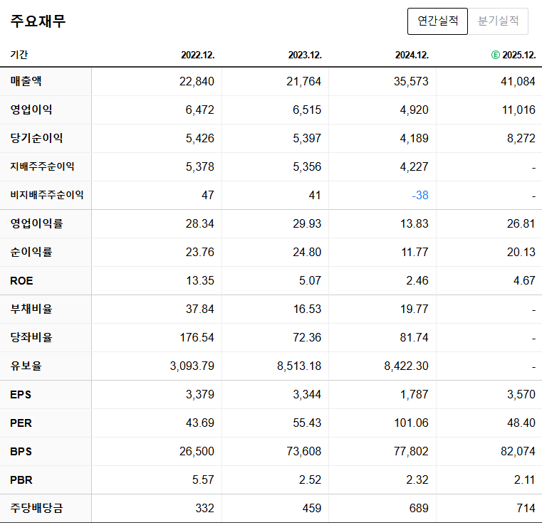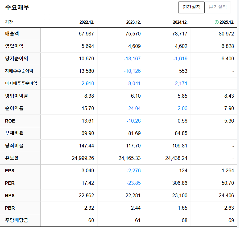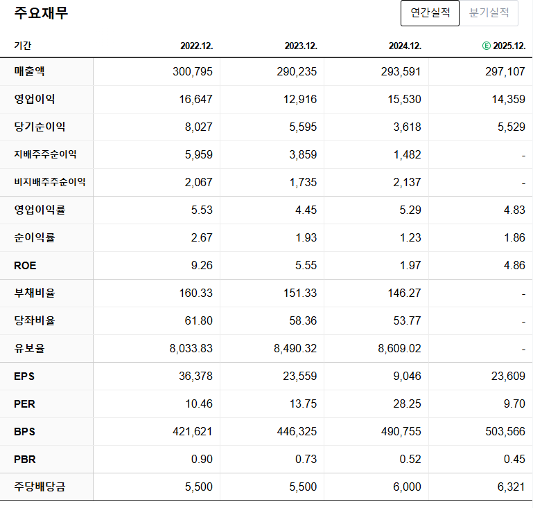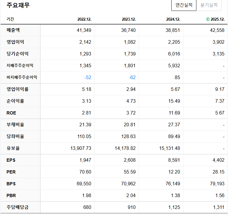 PBR은 0.5배 미만으로 저평가 상태이고, 배당수익률은 약 2.5% 수준