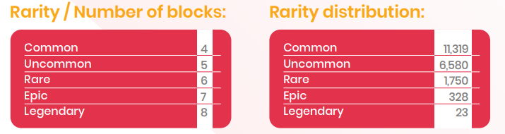 분류된 희귀도는 커먼, 언커먼, 레어, 에픽, 레전더리로 구성됩니다.