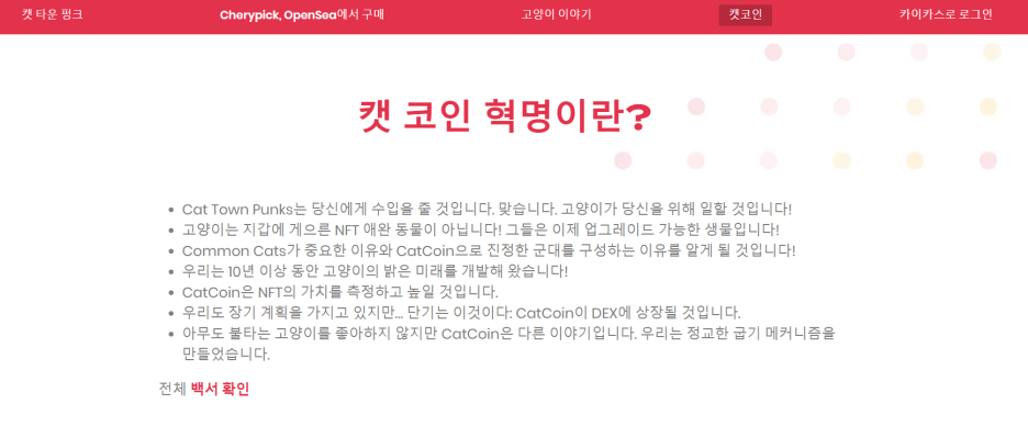 #NFT #캣타운펑크스 #CATTOWNPUNKS #오픈씨 #채굴형NFT #화이트페이퍼 #백서확인