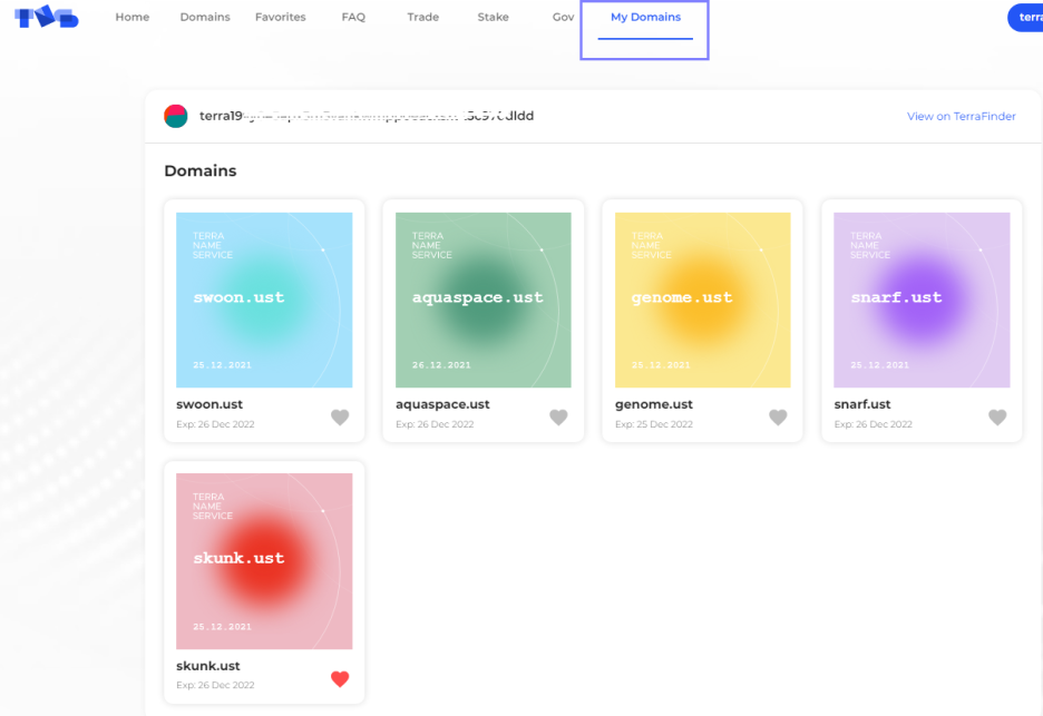 One of a kind domain on Terra. Create your on-chain profile on Terra with TNS.