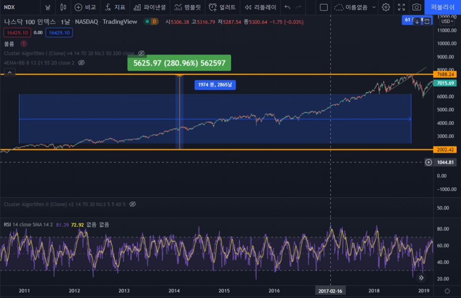 나스닥의 상승을 보시면 7.8년(2865) 280% 상승 하였지만