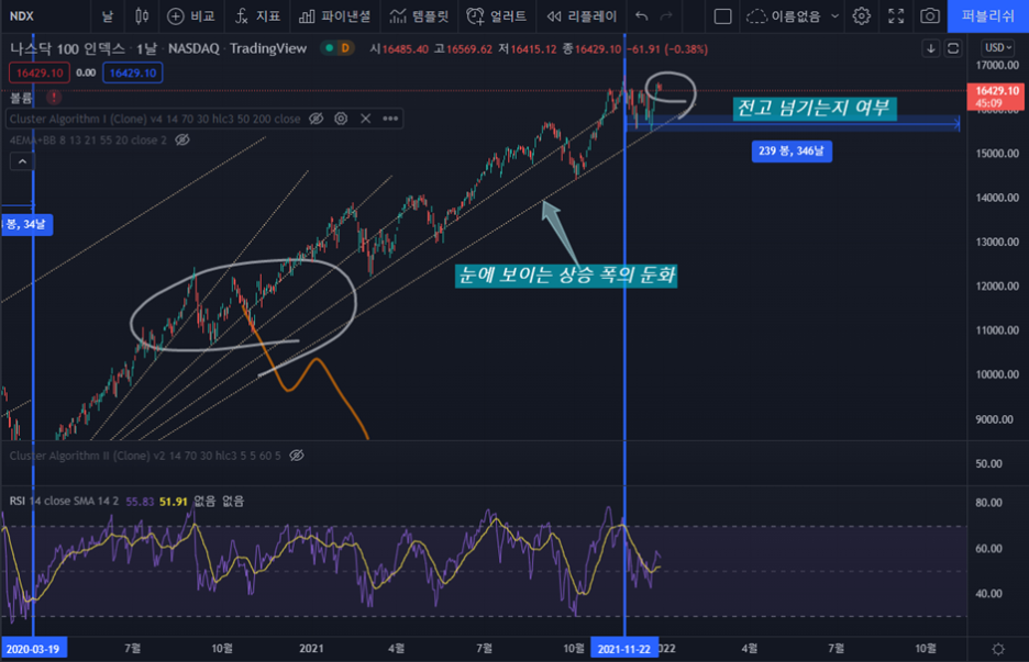 느끼시겠지만 상승 폭이 눈에 띄게 줄어들고 있습니다. 전고를 넘기지 못 한다면 이미 탑 자리이거나 탑 자리에 다다른 느낌입니다.