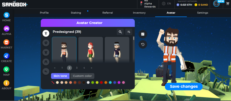 메타 마스크를 연결하고 - 이메일, 닉네임 설정, 비번 설정 하면 게임내 화면으로 진입할 수 있습니다.