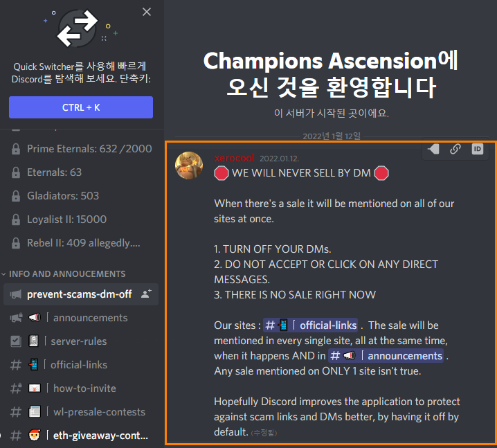 공식 링크로 진입하시고 DM 링크는 진입 안하시는게 정신 건강에 좋습니다.